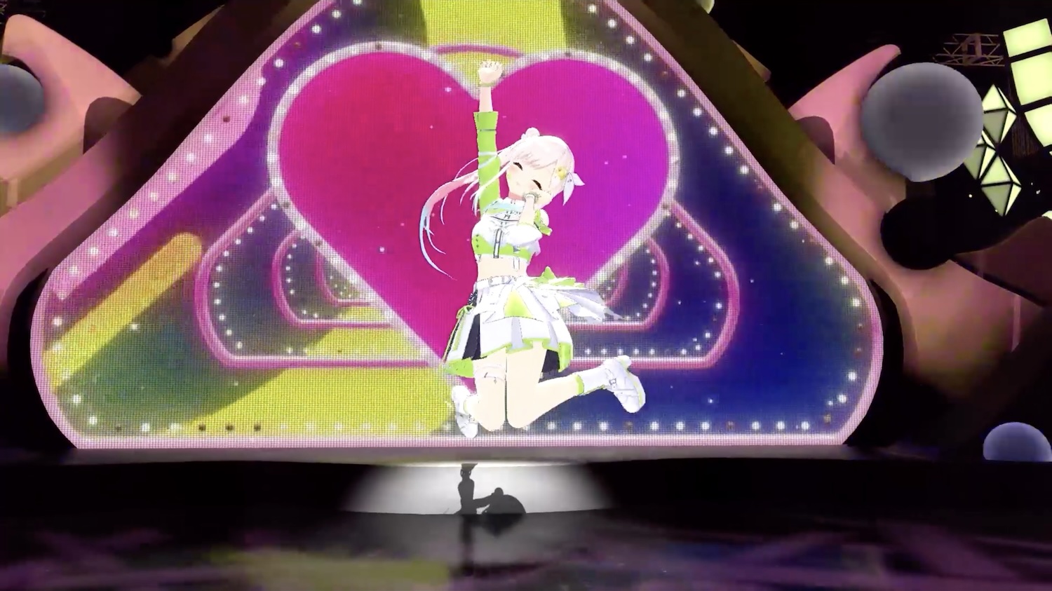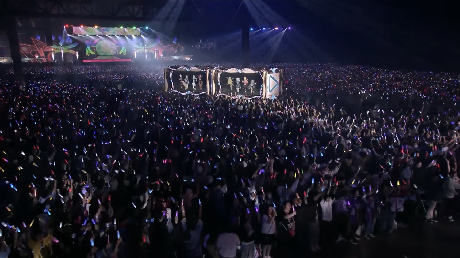 Once again, the venue setup used multiple stages as a way to have more people able to get better views of at least a few performances. The mysterious pod from 6th fes did not return, and was replaced by a new moving cart/trolly contraption with screens on the sides, which acted as “windows” to see the VTubers and vice versa. It moved through a diagonally placed lane that cut through the audience section, with the seeming aim of also providing more up-close viewing and interactions with the talents. While it was definitely less confusing and bizarre than the pod, it didn’t have quite the novelty factor, for better or worse.