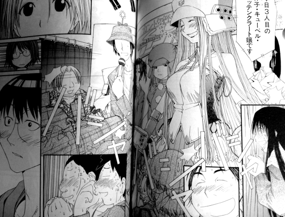 More revelations and events follow. Tanaka and Ohno have started dating. Madarame passes on the mantle of club president to Sasahara, who declares his intent for Genshiken to create a doujinshi to sell at ComiFes. The club even gains two new members: Kuchiki, a familiar face who was rejected from the Anime Society, and Ogiue, a standoffish otaku-hating girl who literally jumped out a second-story window to spite the other Manga Society girls. So Genshiken grows with two problematic additions.