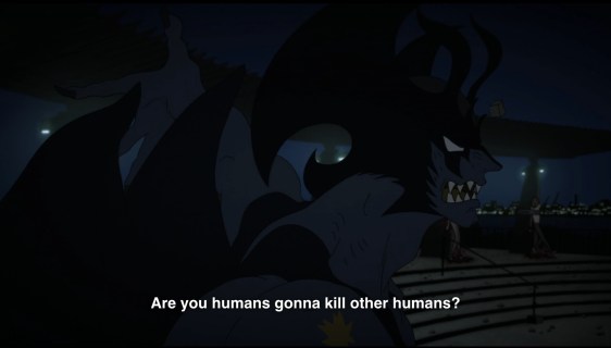 There’s a third symbol too: Devilman’s actual design in Crybaby. Devilman adaptations tend to draw more from the manga than that old anime series, and this extends to the aesthetics of Devilman himself. In almost every version, Devilman feels more like a beast than a man, and Crybaby’s is generally no exception. However, there are times in Devilman Crybaby when Devilman himself feels more reminiscent of the “hero of justice.”