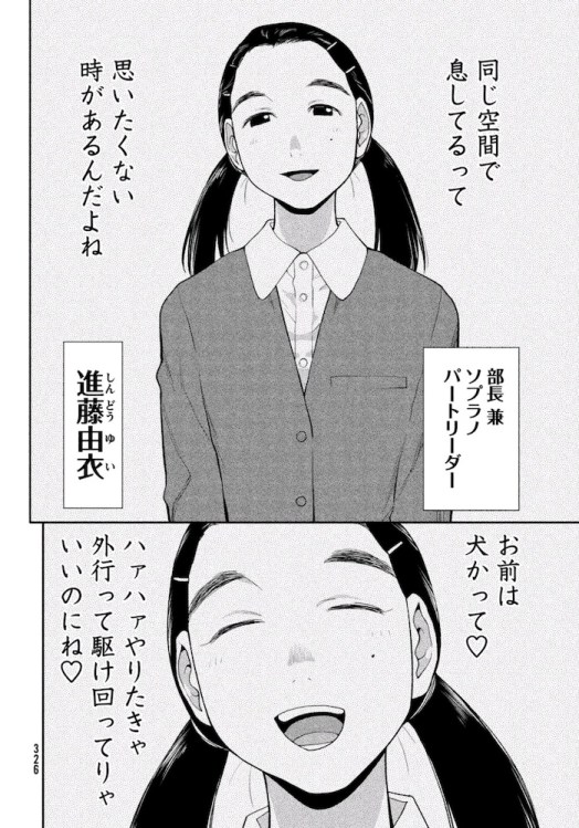 Nishigafuchi lead tenor Saiga (first name Shinnosuke) is in a funk, and the reason is that Shindou Yui, the lead soprano. Shindou mentioned that she sometimes doesn’t want to thing about how they’re breathing in the same space, and that with the way he keeps panting, he should just run around outside like a dog. To prove himself, he plans on challenging Jin to a competition, but gets punched in the mouth by Orihara instead. Shinji wonders if Orihara did it to defend Jin, but Orihara claims it was because he wanted to sing more Brahms. The punch actually makes Saiga want more because it reminds him of Shindou’s sadistic behavior.