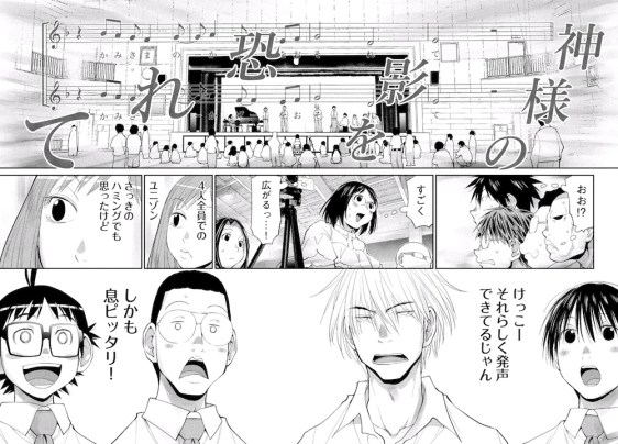 It’s the conclusion of the Hashimoto two-group chorus competition in Hashikko Ensemble Chapter 22: Me o Sorasanai (Don’t Look Away).