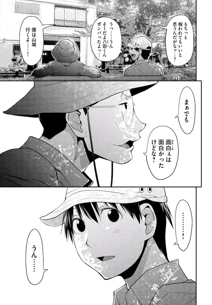 Now that M-Con is over and the rest of summer break is left, Shinji decides to do what he’s been wanting to this whole time: visit a castle! After all, his original plan in high school was to make a Mountain Castle Club, before he got roped into singing. He wanted to bring the other members along, but only Akira and Hasegawa ended up joining him. Also, it’s technically a valley castle and not a mountain one, but that’s better for amateurs like the latter two anyway, according to Shinji.