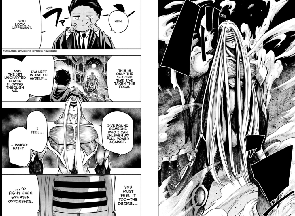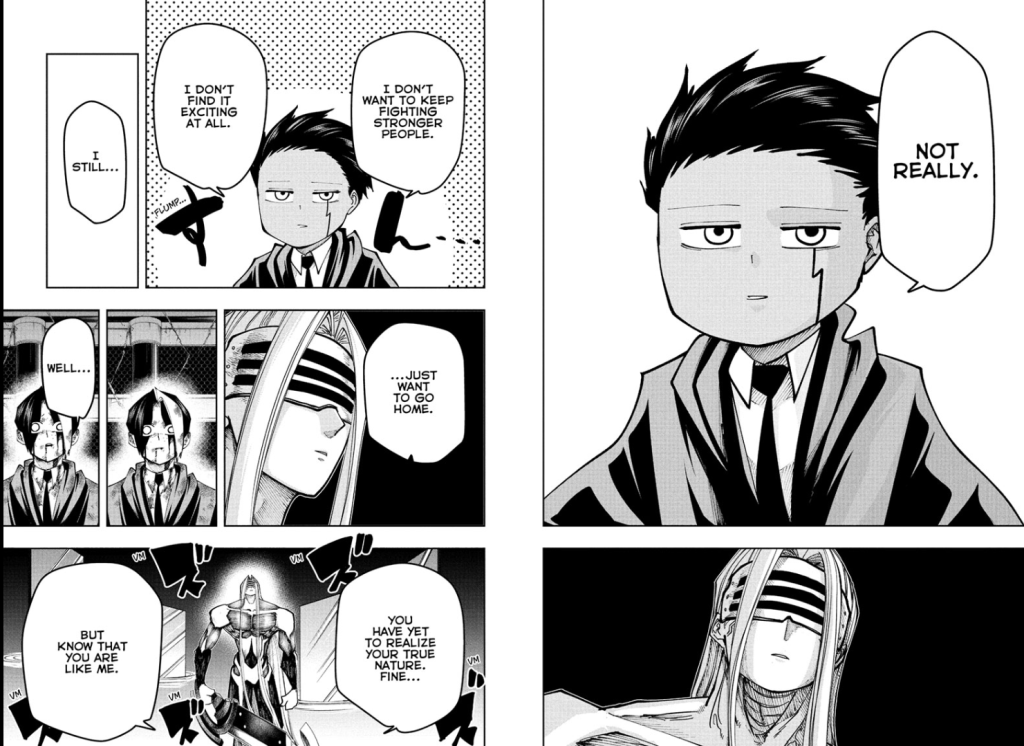 To which Mash responds, “Not really. I don’t want to fight stronger people. I don’t find it exciting at all. I still…just want to go home.”