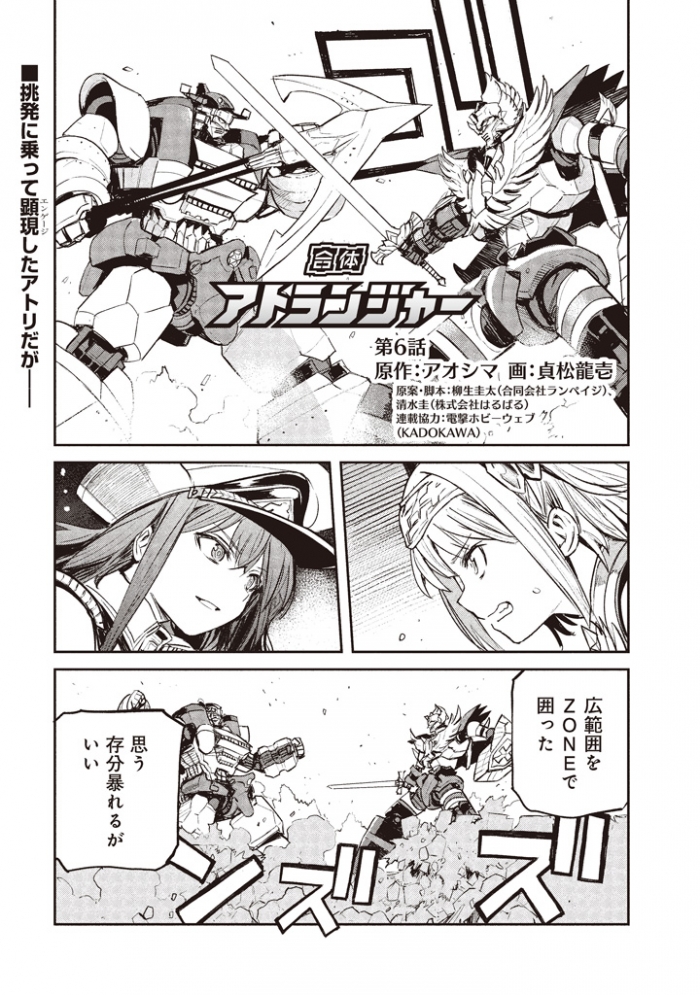 An Atlanger manga then debuted digitally in 2021. Gattai Atlanger was published on the Dengeki Hobby website, coinciding with the ACKS model kit release and featuring multiple cute moe girls. In this version, Atlanger was a sentient guardian deity robot who fought against a threat to humanity called Shadow (not Gloustar). After a cataclysmic battle, the AI for Atlanger was sent back across time and space, meeting schoolgirl Hotaka Atori, who becomes capable of transforming magical girl–style and even summoning Atlanger in super robot form. This manga ran for six chapters, with the ACKS kit version of Gattai Robot Musashi also showing up.