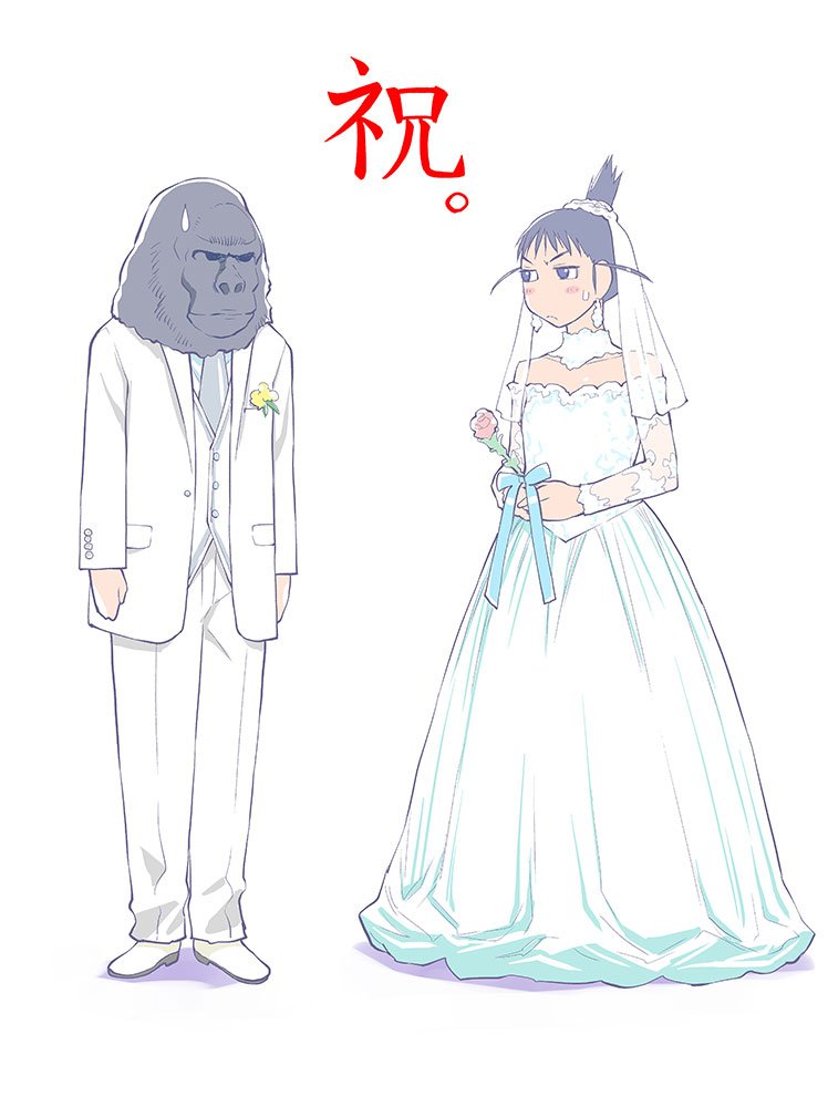 We don’t get much Genshiken news these days, but the Hashikko Ensemble official Twitter account recently tweeted about Yamamoto Nozomi, the voice actor for Ogiue Chika in Genshiken Nidaime, congratulating her on getting married. Accompanying the tweet is the drawing by Kio Shimoku of Ogiue in a wedding dress seen above.