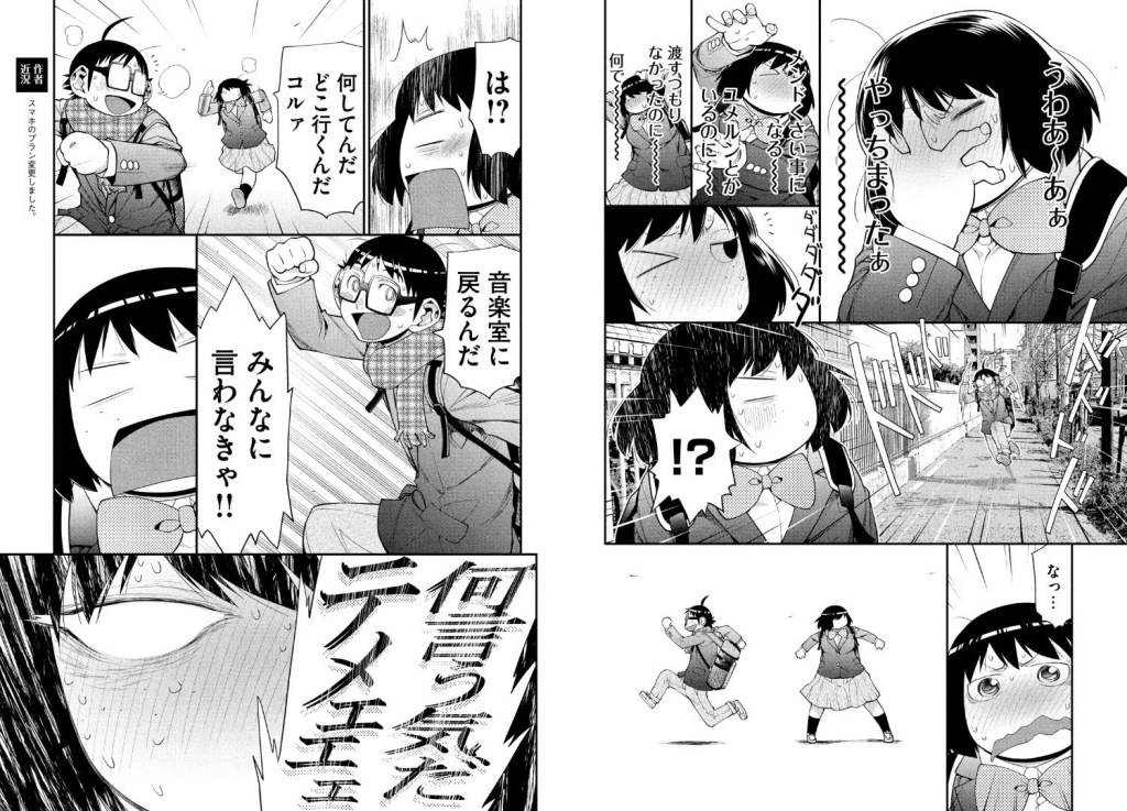 Hashikko Ensemble is notably different from pretty much all of Kio’s previous works in the way that there’s a concrete underlying goal for its cast. Whether it’s Genshiken or any of the series that have preceded or followed it, Kio’s stories have always been more about exploring character relationships in spaces devoid of strong ambition. Hashikko Ensemble is very much about the characters and how they connect with one another, but the theme of music and an in-story goal of forming a proper club (and a proper chorus) means that there’s a good deal of forward momentum that’s absent in Kio’s other manga—with the arguable exception of Kujibiki Unbalance. Seeing that relatively more “focused” Kio Shimoku manga makes me wonder how things would go if he took it a step further, maybe even into a more adventure-type work, or something like palace intrigue.