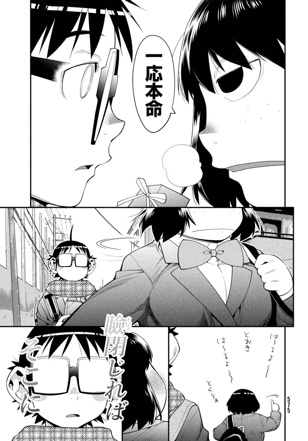 Then, Jin reciprocates Kozue’s romantic Valentine’s chocolate with a White Day chocolate of his own, and says he likes her too. Kozue is happy, but notices Yumerun staring daggers into her, leading to a bit of off-panel comedic fury.