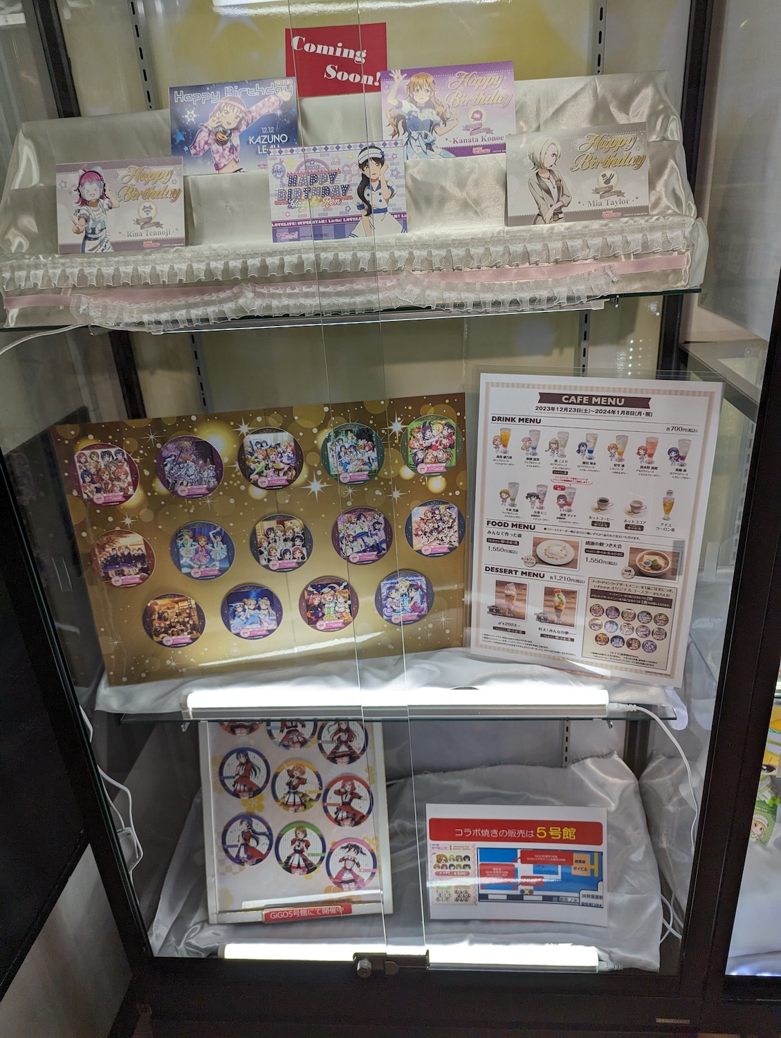 Upon entering, I found myself in a small room covered in Love Live! paraphernalia, including posters, gashapon machines, and display cases. As a video played with scenes from the anime, Love Live! Songs could also be heard at the same time, dividing my attention a bit. The actual cafe was hidden behind a door, making it impossible to actually see what it’s like without registering with the cashier there.