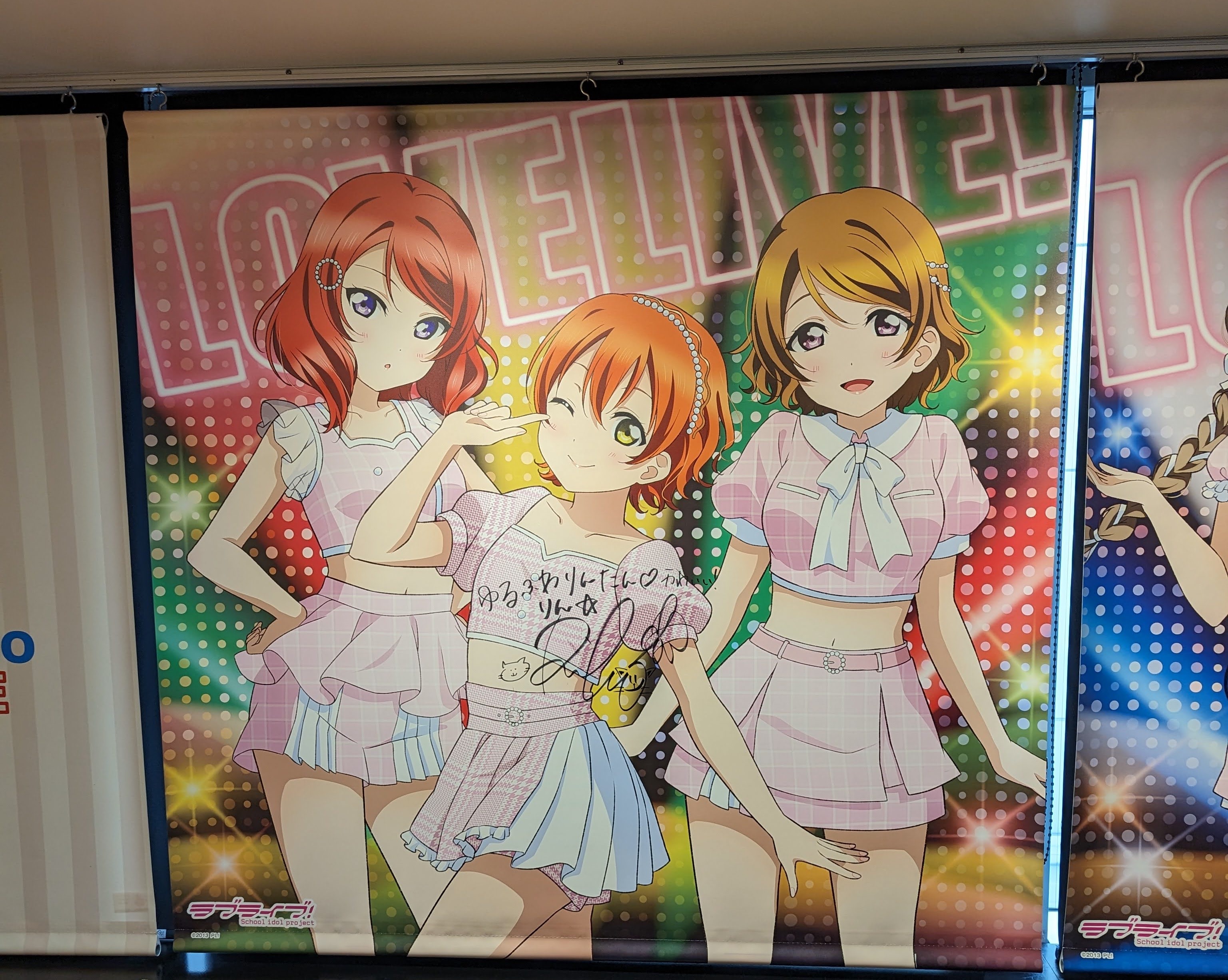 The actual cafe was brightly lit and covered in μ’s art on the walls and the tables. A couple of the voices, Uchida Aya (Minami) and Iida Riho (Rin), had autographed some of the displays.