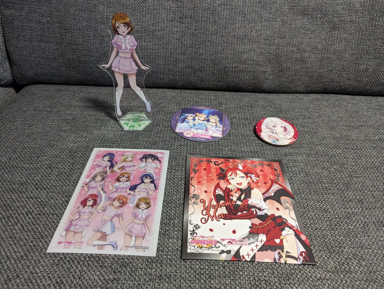 You can see everything I ended up with (plus a canvas badge of Yugiri Tsuzuri from Hasunora I purchased elsewhere). While nothing there is really mind blowing, I’m glad I got to have this experience, and I’m happy I got to share it today, on Hanayo’s birthday.