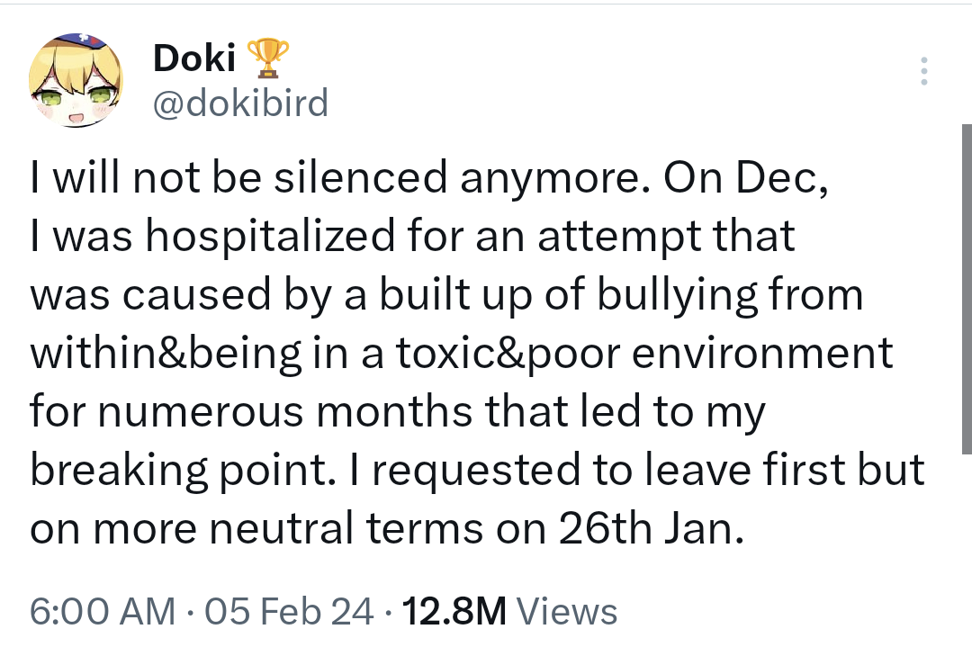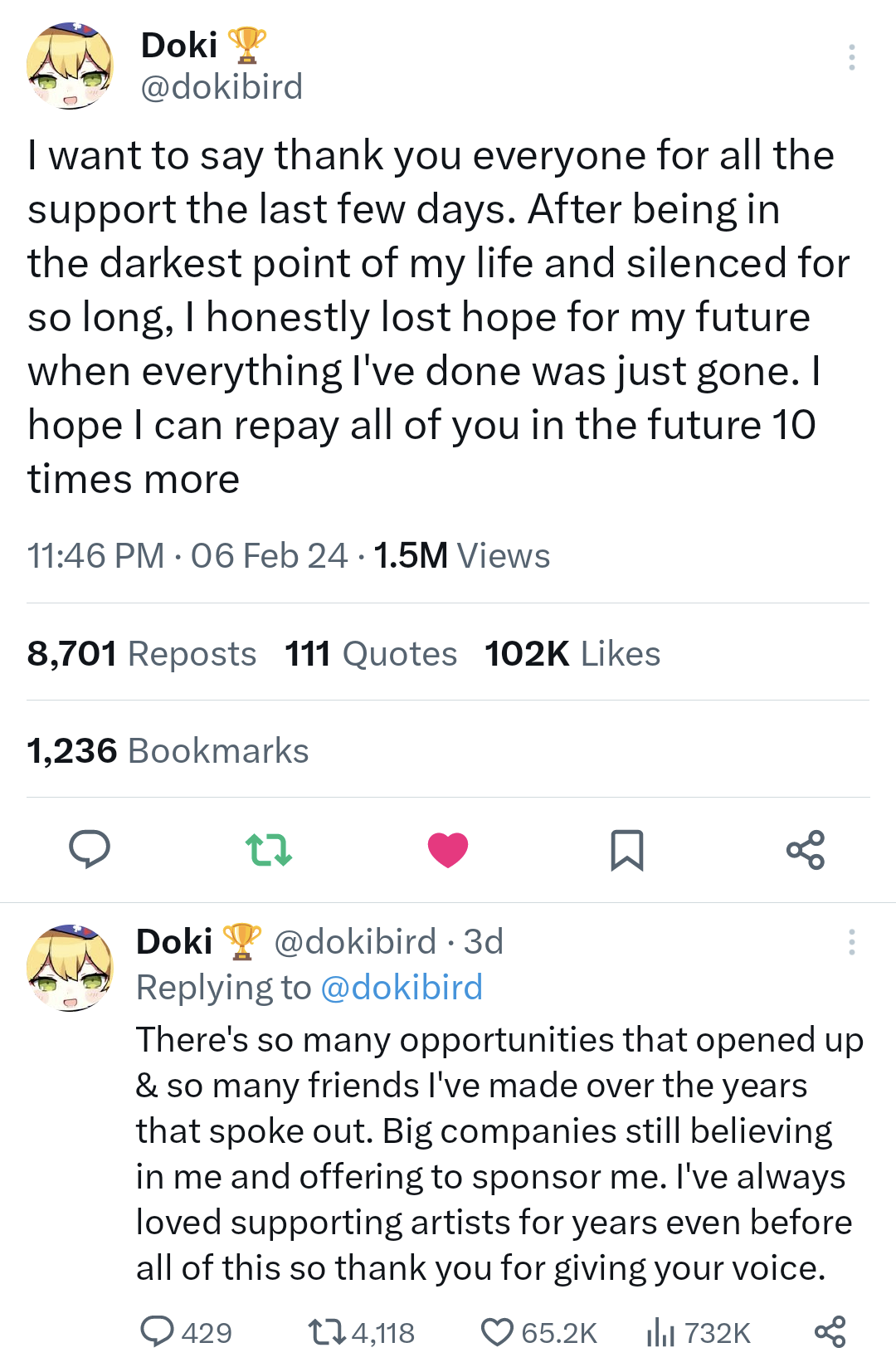 A few days after Selen’s termination and reemergence as Dokibird, Axel made a tweet: