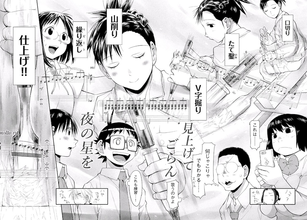 The Chorus Appreciation Society has emerged triumphant over Tsuyama’s group, and now the M-Con competition is only one week away. But while that ought to be everyone’s highest priority, Shion is still trying to complete a hammer-and-chisel woodworking assignment she just can’t seem to figure out. Meanwhile, everyone else is wary that the group’s only pianist is potentially putting her own fingers in harm’s way.