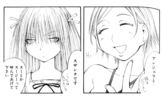 I always found Angela and Sue to be fairly realistic, if exaggerated portrayals of American fangirls, but I think that it’s become even more the case as time has passed. Maybe it’s my greater exposure due to social media like Twitter, but Angela’s willingness to just announce her fetishes without hesitation seems not that unusual. Then again, Yoshitake from Nidaime is built from a similar cloth; the only difference is maybe level of sexual experience (Angela is clearly sexually active, while Yoshitake is very much not).