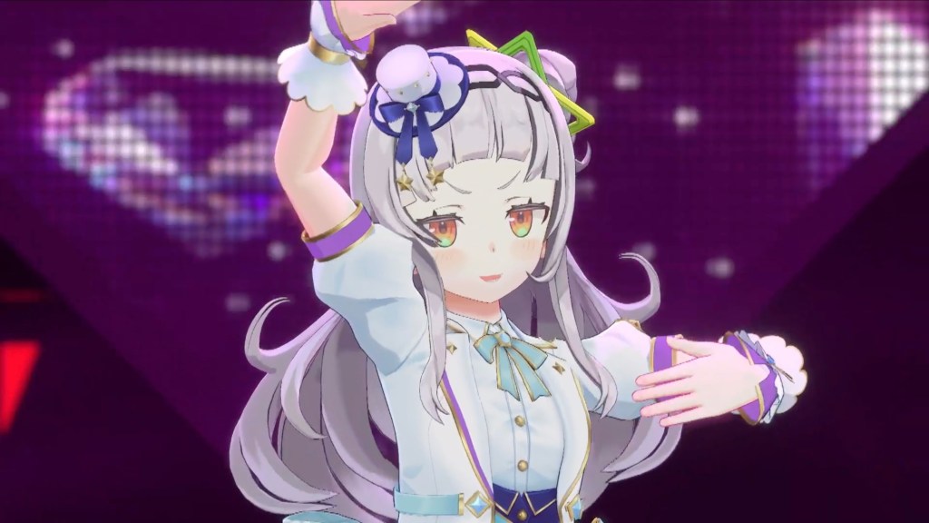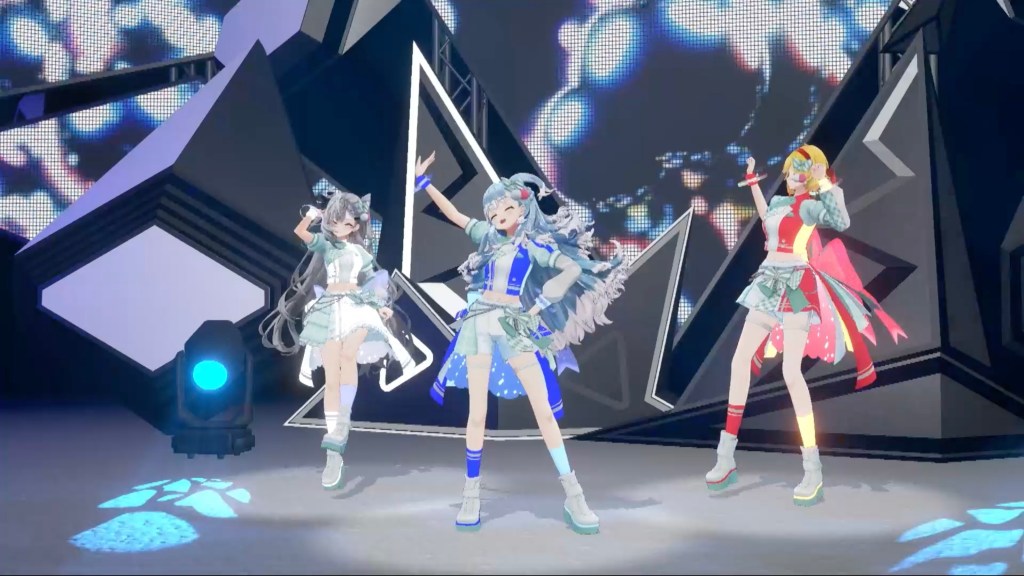 Usually, La+ Darknesss is a part of that list of dancers, and she did make for a great idol dance trio with Matsuri and Momosuzu Nene. However, for her solo performance this year, the leader of holoX eschewed a complex choreography for a greater focus on singing. As a fan of hers, I find this noteworthy because La+’s voice has struggled some ever since illness forced her to change the way she speaks and even laughs. But here, singing “Tokyo Teddy Bear,” she sounded maybe the best she has outside of a studio recording in a while. And while she didn’t have a fully structured routine, she brought her characteristic energy and impeccable sense of poise when posing.