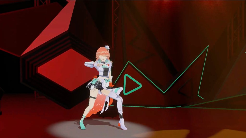 This year, they went with two stages and a pod in the middle of the space. The two stages were similar to 5th fes’s, but the pod was so unusual that at first, I wasn’t sure what I was looking at. Essentially, it was a three-sided structure that rotated continuously, with a single performer displayed on the screens and additional walls blocking certain angles. I think the idea was that it gave a chance for everyone in the 360 degree space to get a decent view, but because the stream view could only ever see one screen, I couldn’t tell if the other two were showing the performer at different angles (for a kind of pseudo-3D hologram view), but I’ve seen others online say that was the case.