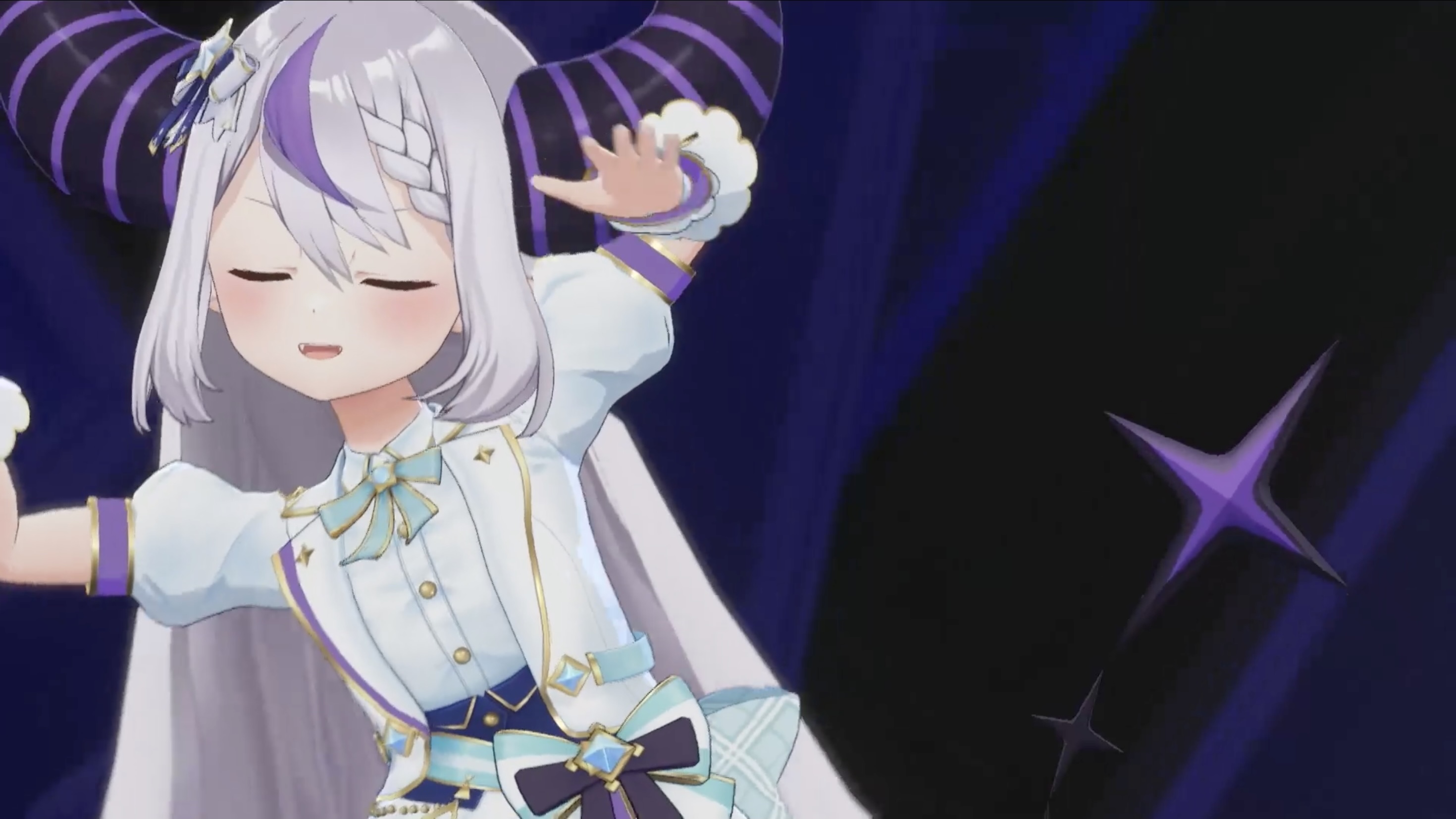 Usually, La+ Darknesss is a part of that list of dancers, and she did make for a great idol dance trio with Matsuri and Momosuzu Nene. However, for her solo performance this year, the leader of holoX eschewed a complex choreography for a greater focus on singing. As a fan of hers, I find this noteworthy because La+’s voice has struggled some ever since illness forced her to change the way she speaks and even laughs. But here, singing “Tokyo Teddy Bear,” she sounded maybe the best she has outside of a studio recording in a while. And while she didn’t have a fully structured routine, she brought her characteristic energy and impeccable sense of poise when posing.