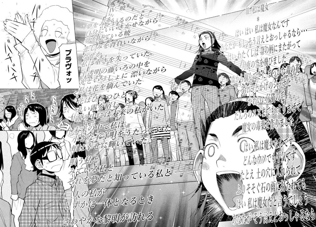 Kio describes being happy to discover that manga artist Nakano Deichi is able to make a work like h na h to A-ko no Noroi, which has a different feel from his previous works.