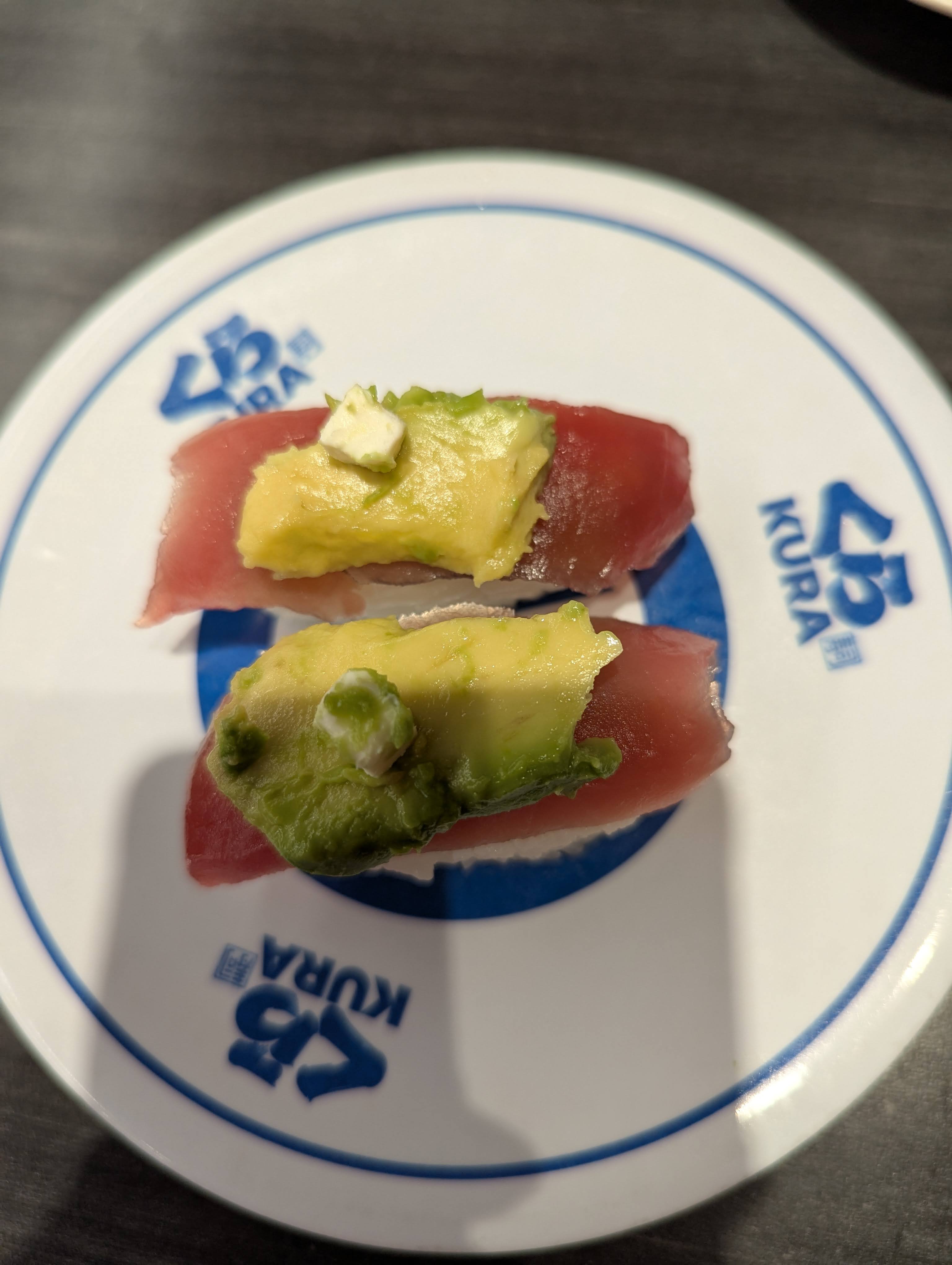 Ouro Kronii’s “Tuna with Avocado Cream Cheese, which pairs soy-marinated tuna with avocado and cream cheese over Kura’s specialty sushi rice.”