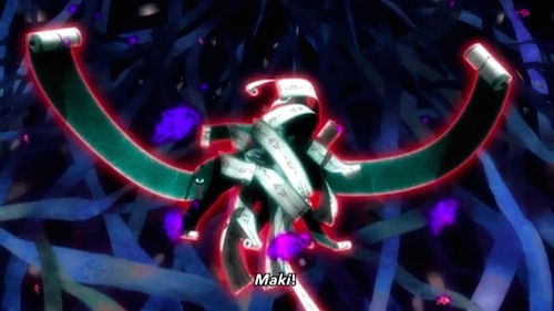 Both Heart-Under-Blade and Hanekawa feature prominently throughout the Kizumonogatari films, but it is in Reiketsu that their differences in terms of their emotional/spiritual connections to Araragi are fully highlighted. In one scene, Araragi claims that he needs to fondle Hanekawa’s breasts in order to steel himself against Heart-Under-Blade’s tremendous bosom, but as much as Araragi tries to embrace the role of the stereotypically aggressive male in Japanese pornography—and as much as Hanekawa is ready for things to escalate—it’s ultimately only an act for him. In contrast, both Heart-Under-Blade and Araragi are more than willing to engage each other physically, albeit in the form of a violent battle instead of something sexual (though the smiles might imply otherwise). One is a very human relationship (albeit filtered through an assumed “right” behavior instead of lived experience) the other built on the supernatural. It’s telling that the most exquisitely animated moments in the entire film are Hanekawa removing her bra and the battle between Araragi and Heart-Under-Blade.