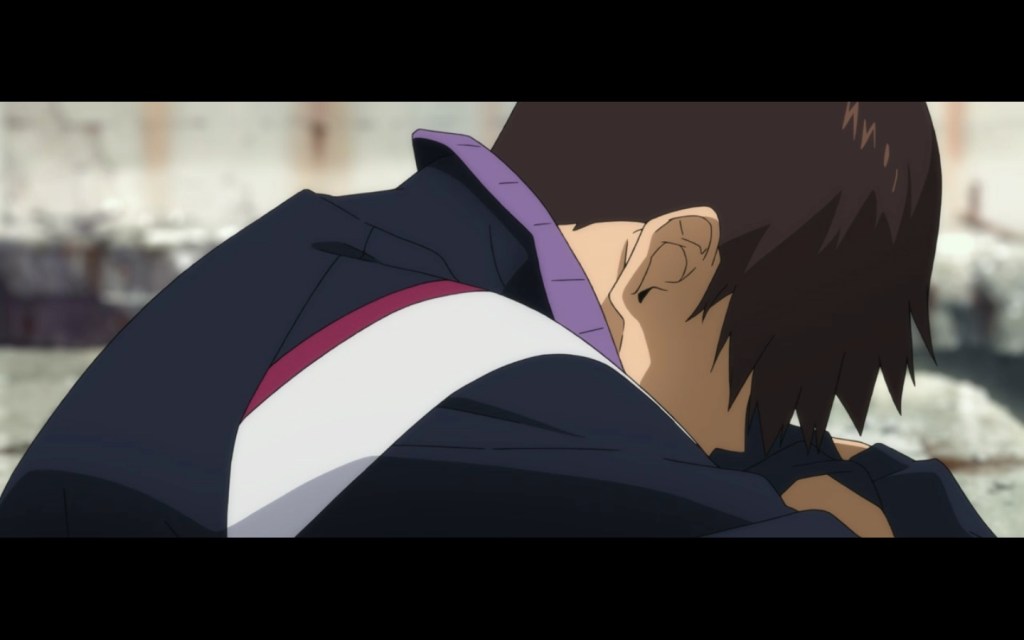 One notable aspect of these scenes is that they call back to not just the previous Rebuild films but also what came before. Regardless of whether this is meant to be merely symbolic or is actually saying that all the Eva anime exist in the same multi-reality and are all connected, the result is a move towards resolution as a whole. When talking with Asuka, Shinji and her return to the beach at the final parts of The End of Evangelion. This Asuka is actually wearing the plugsuit uniform of NGE (a visual marker of the difference between Sohryu and Shikinami), and when Shinji says, “I loved you too,” he’s both responding to the future Shikinami’s casual reveal of her old crush and the more emotionally stormy Sohryu.